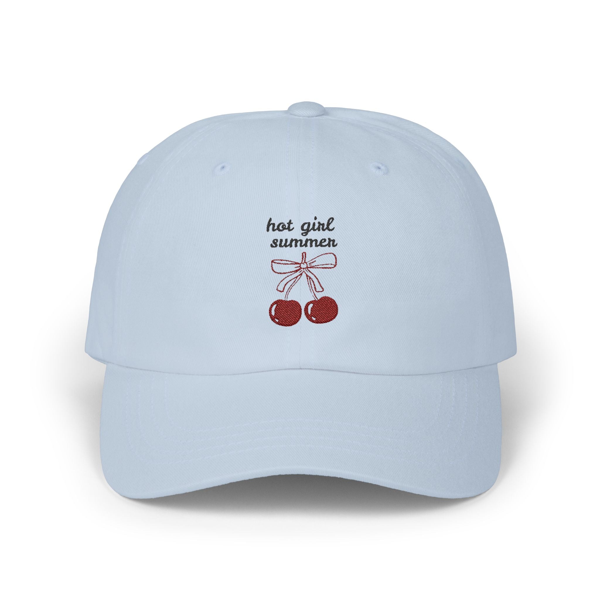 Stay stylish and cool during the hot summer days with this Hot Girl Summer Cherry cap featuring cute cherry embroidery. This cap offers a comfortable fit for everyday wear and is perfect for adults looking to add a fun touch to their outfits. Ideal for summer outings, beach trips, and casual events.