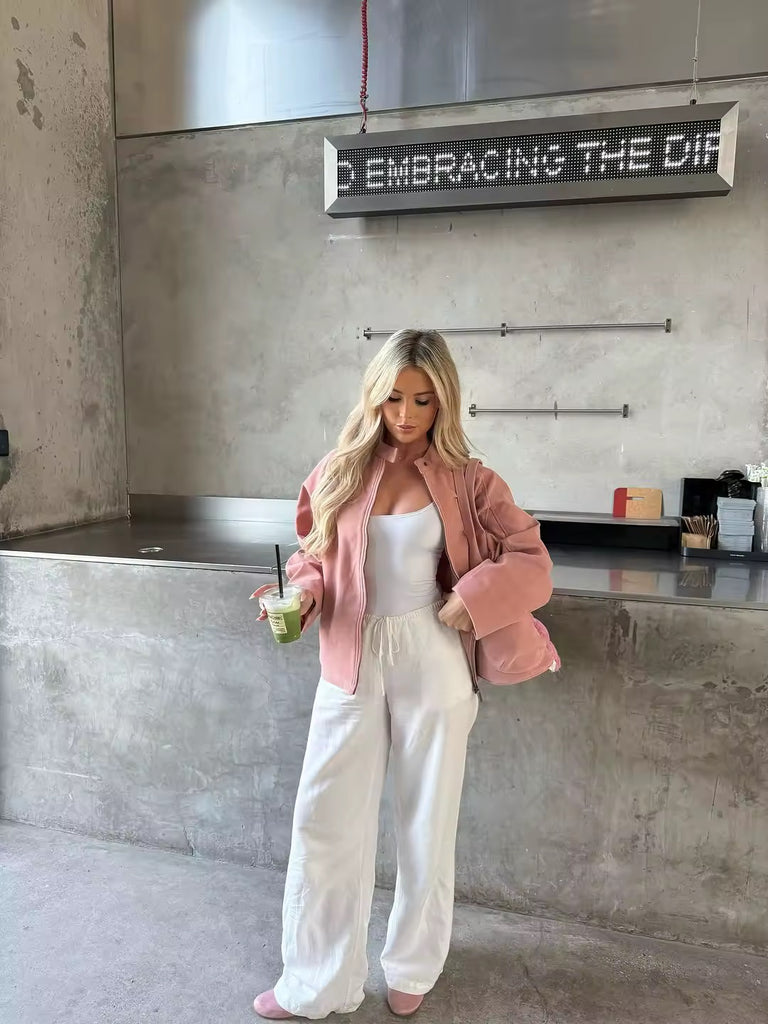 Stay cozy and stylish with the More Matcha Please Pink Zipper Coat. Its vibrant pink hue adds a playful pop to any outfit, while the smooth zipper ensures easy wear and a snug fit. Perfect for chilly days, this coat combines comfort and charm, making it a must-have addition to your wardrobe. Embrace warmth and fun in one effortlessly chic piece.