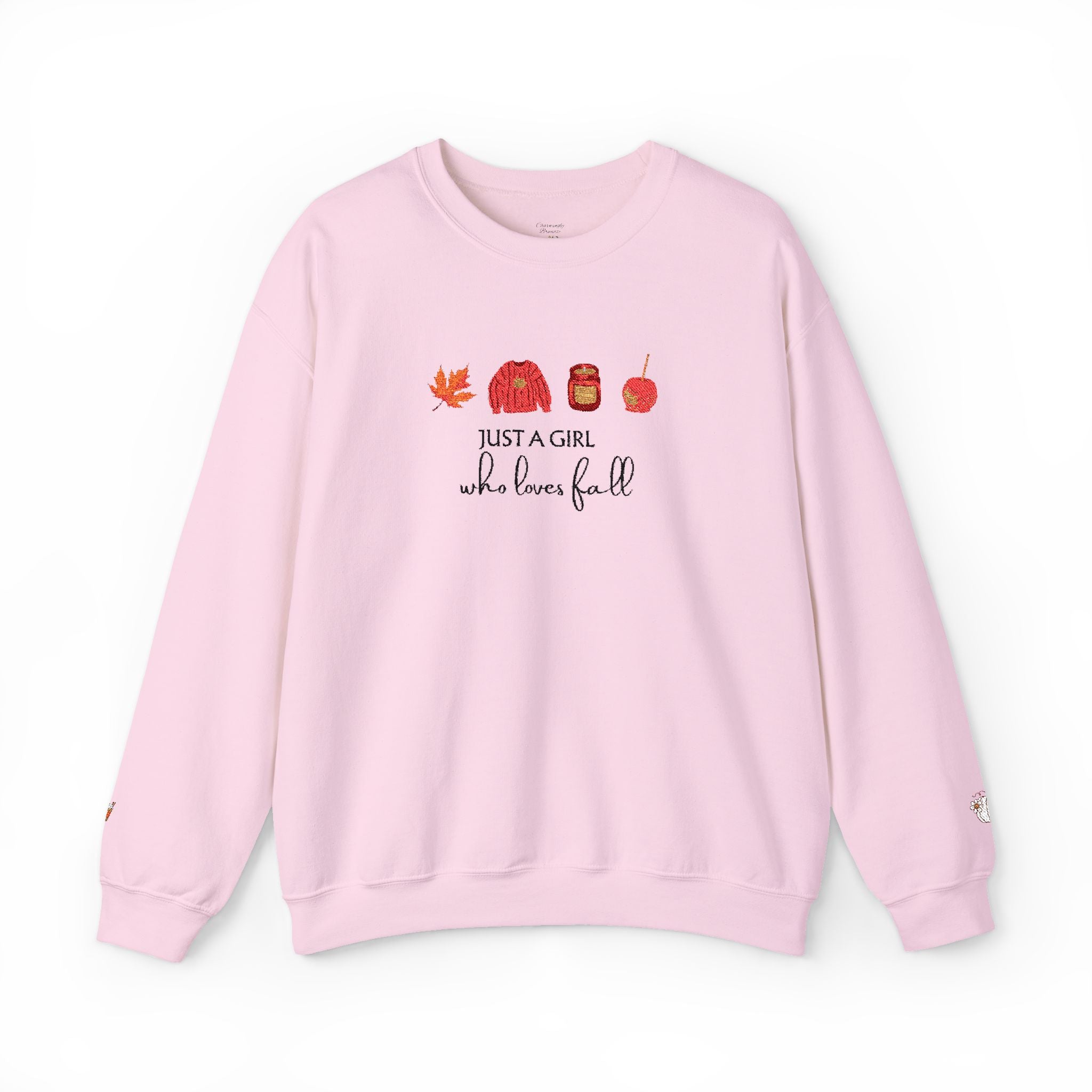 Charmingly Brunette Embroidered I’m Just A Girl Fall Sweater