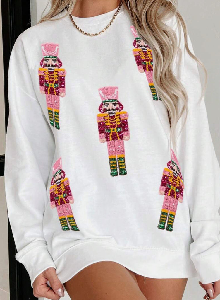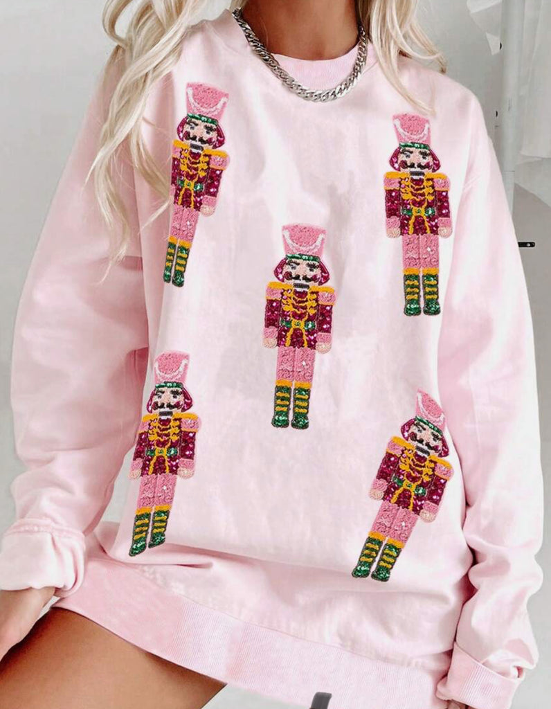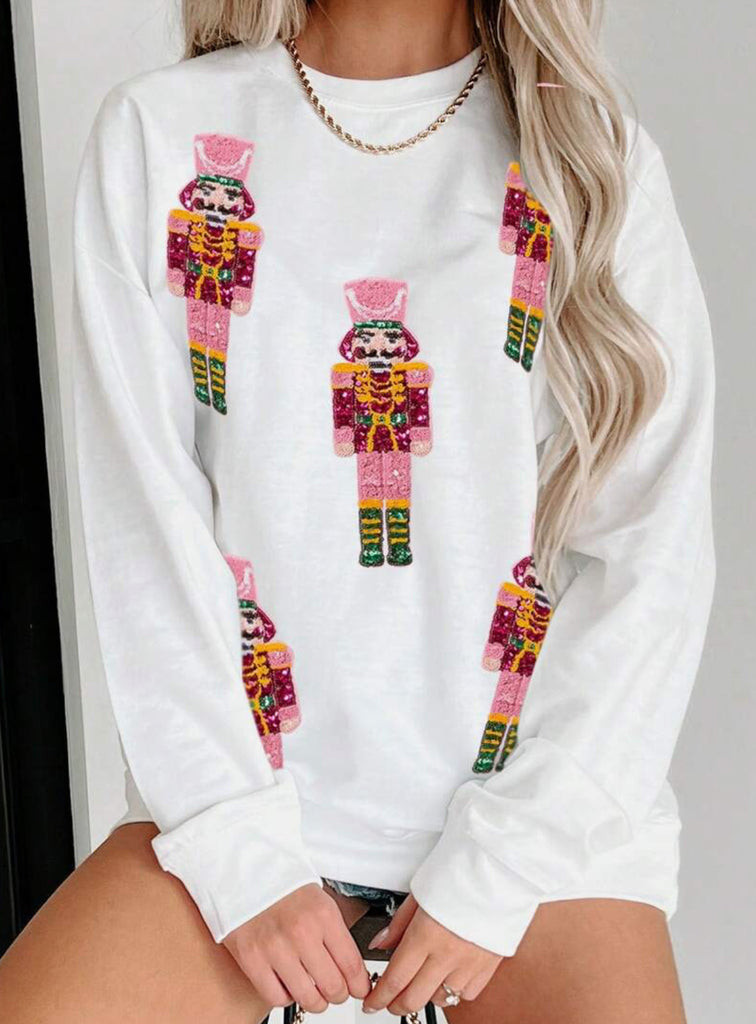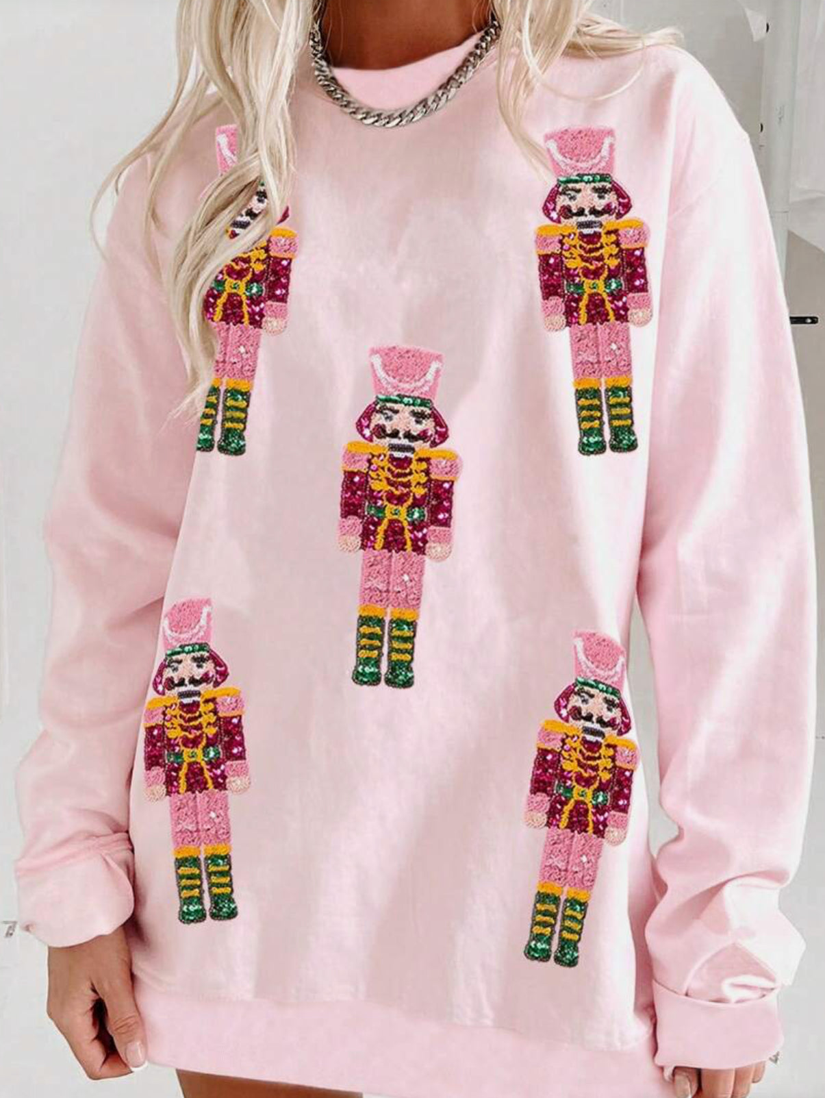 Nutcracker Bliss Holiday Sequin Sweater Transform your festive wardrobe with this enchanting holiday sweater that captures the magic of the season. Adorned with shimmering sequins that catch the light with every movement, this piece brings glamorous sparkle to your celebrations. The classic nutcracker-inspired design evokes timeless holiday charm while the luxurious sequin detailing elevates your look from ordinary to extraordinary. Perfect for holiday parties, family gatherings, or festive nights out, this sweater combines comfort with show-stopping style. Make a statement this season and let your holiday spirit shine as brightly as the sequins that adorn this must-have sweater.