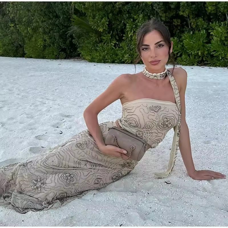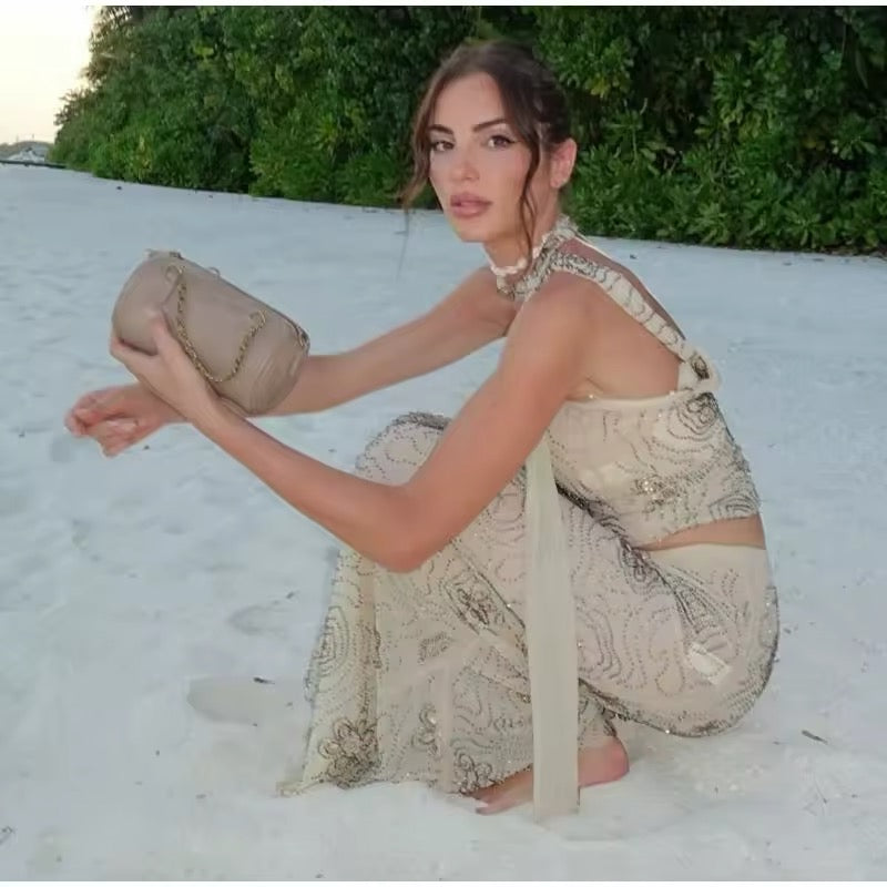 Indulge in a carefree and stylish beach day with our Sexy Beaded Beach Set! Feel confident and elegant in this two-piece set featuring a stunning beaded top and a flowy skirt. Perfect for a day filled with sun, sand, and relaxation. Embrace the beach vibes with our Sexy Beaded Beach Set!