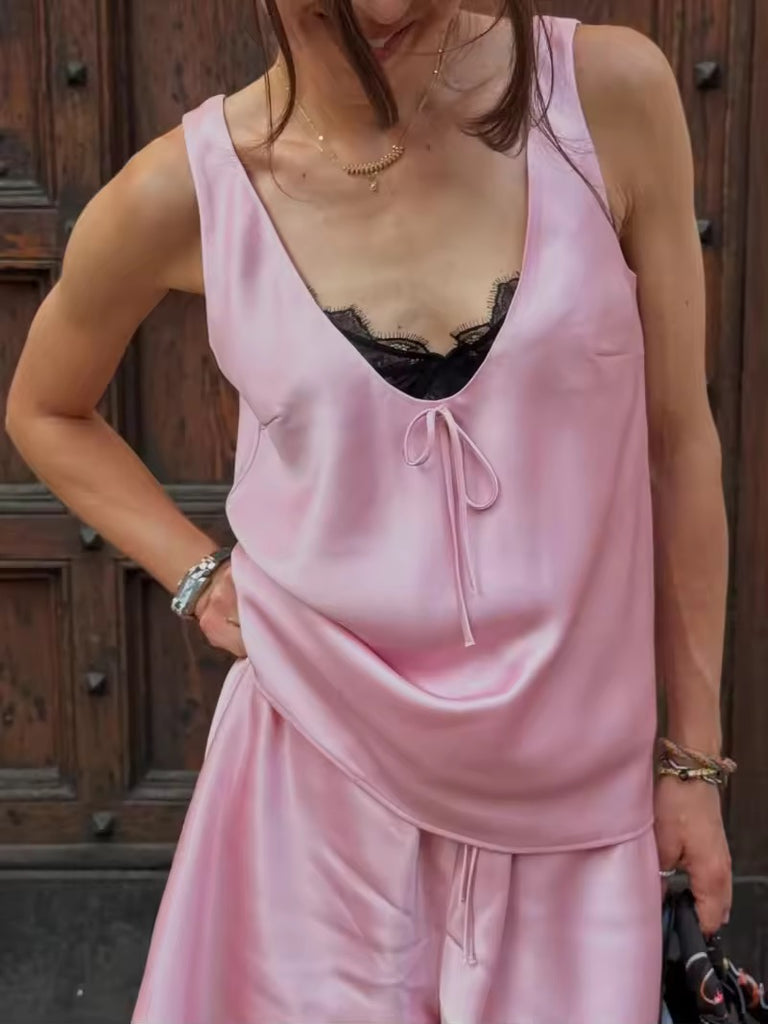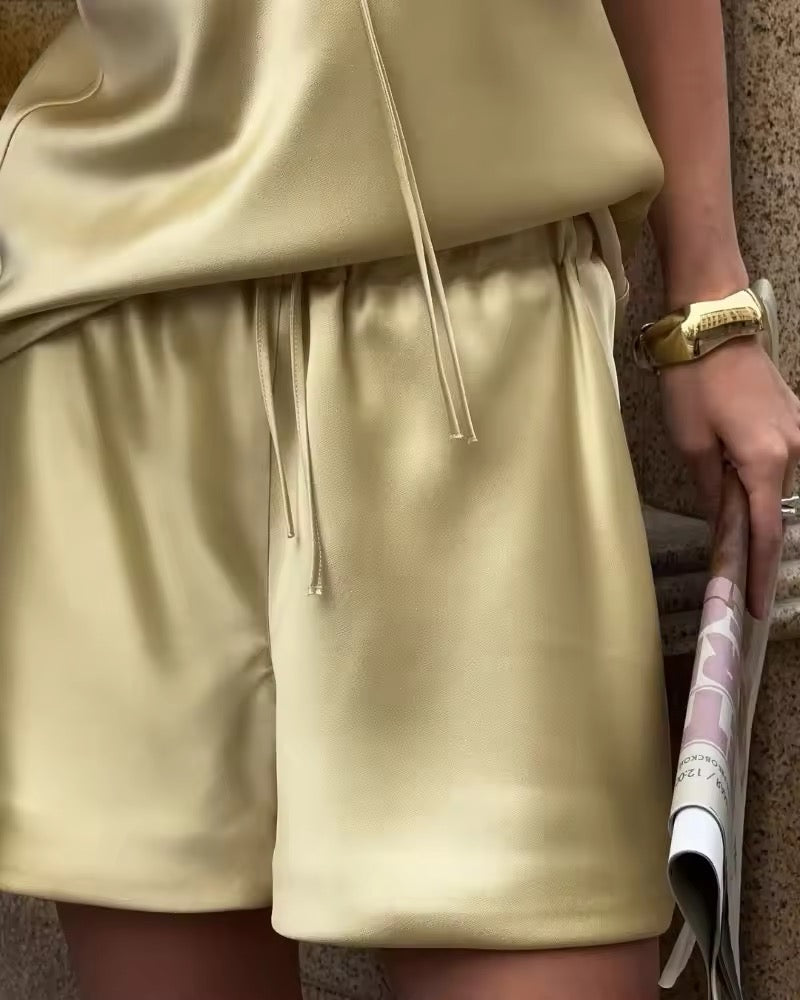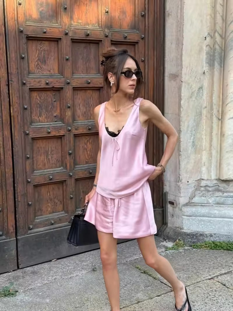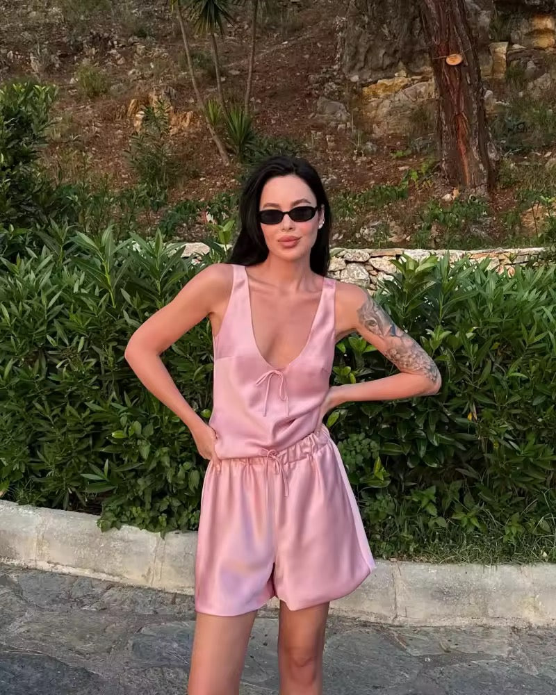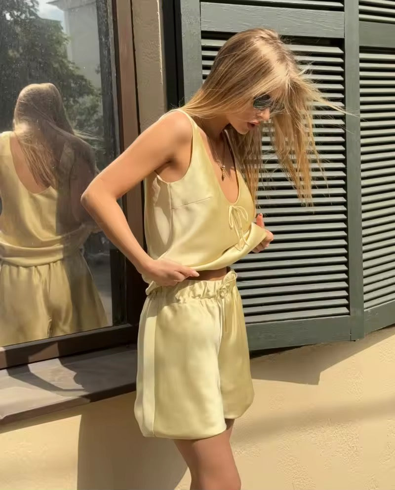 Experience ultimate comfort and style with the Rich Girl Comfy Satin Set. This elegant set includes a smooth satin tank and matching shorts, designed to keep you feeling luxurious and relaxed all day or night. Perfect for lounging or casual wear, its silky fabric offers a soft touch against your skin while adding a chic, polished look to your wardrobe. Elevate your comfort with this effortlessly stylish satin duo.