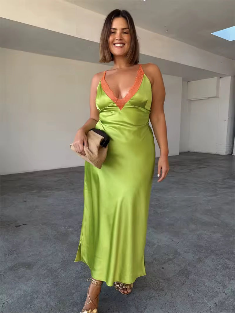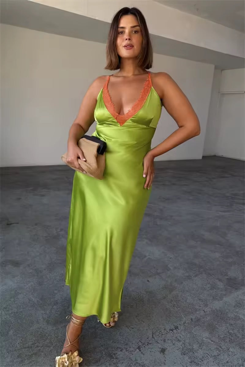 Elevate your elegance with the Paris Lace Satin Silk Dress, a perfect blend of luxurious satin and delicate lace that flatters every curve. Its silky smooth fabric feels gentle on the skin while the intricate lace detailing adds a touch of romance. Ideal for special occasions, this dress promises effortless sophistication and timeless beauty, ensuring you make a lasting impression wherever you go.