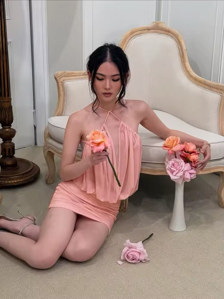 The Dusted In Rose Dress exudes delicate femininity with its light pink hue. Made from soft, flowy fabric, this dress is perfect for any occasion. Its flirty, ruffled hem adds a touch of playfulness, making you feel confident and beautiful. Elevate your style with this effortlessly charming dress!