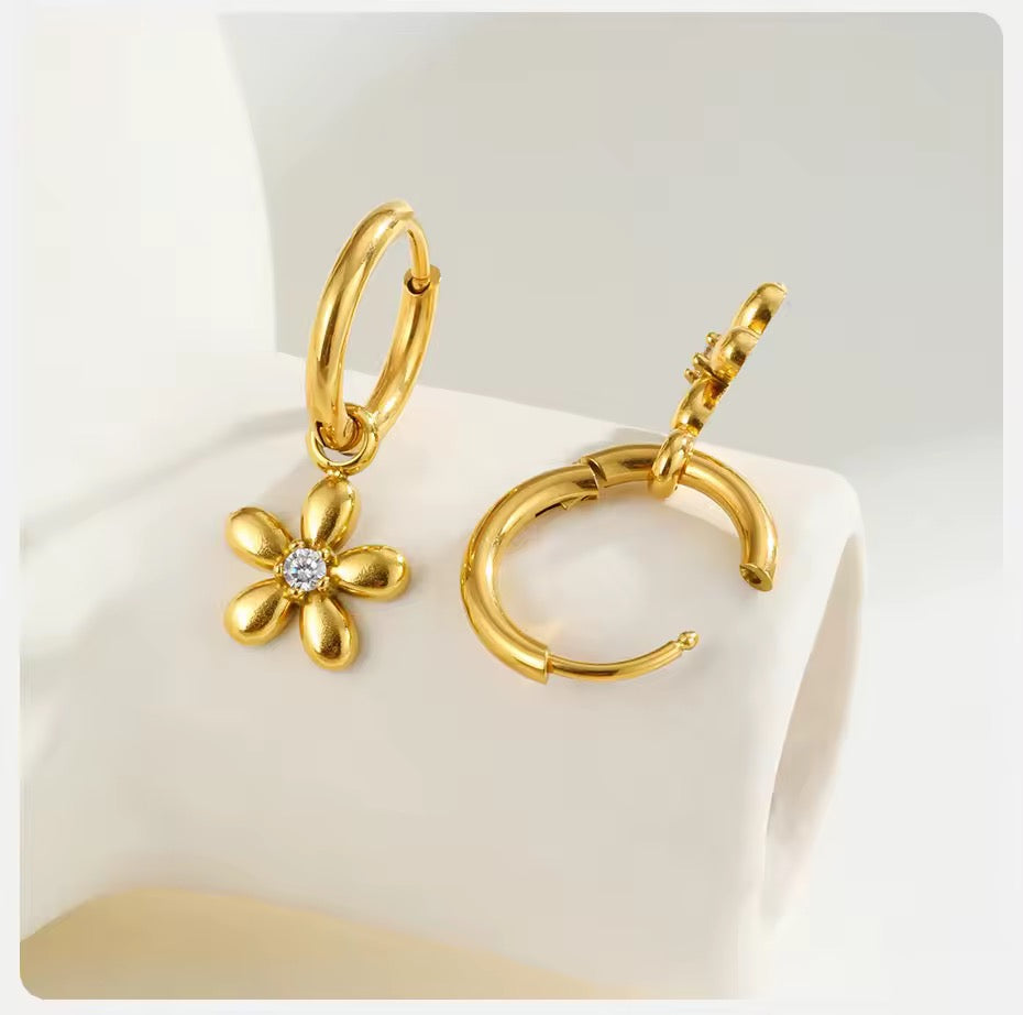 Inlaid Cubic Zirconia Floral Dainty Hoop Earrings