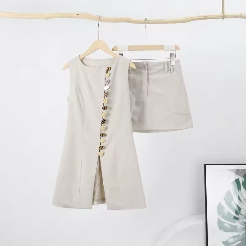Elevate your style with our Earth Tone 2 Piece Vest Set! Made with exquisite detailing and featuring earthy tones, this set includes a skirt and vest for a classy and chic look. Perfectly balanced, this set is sure to inspire strong emotions while keeping you stylish.