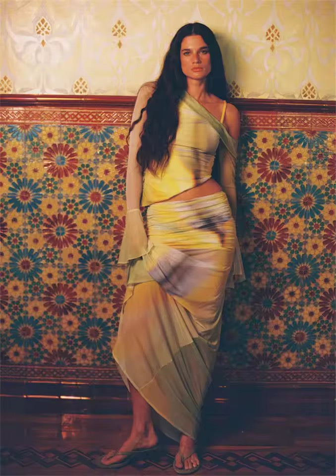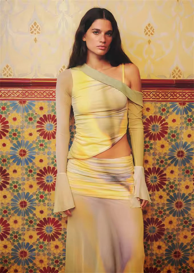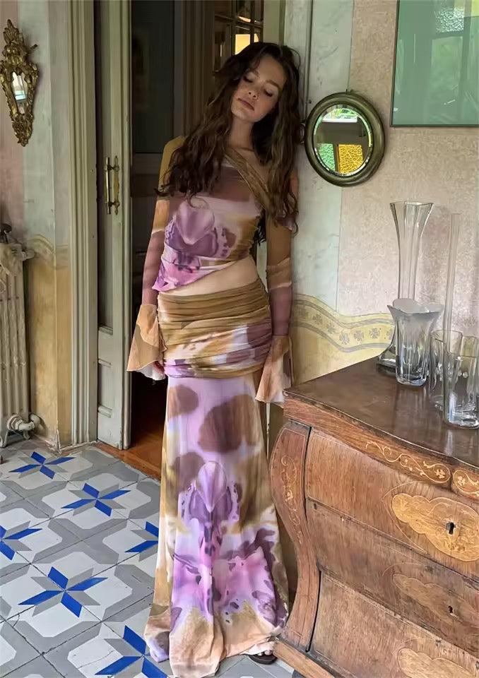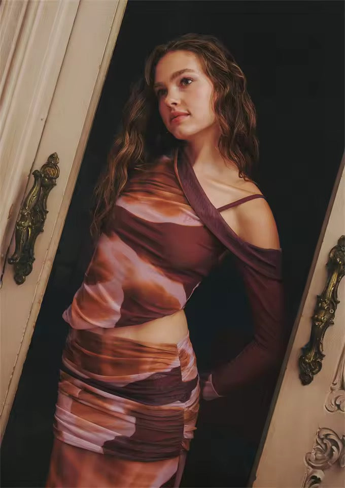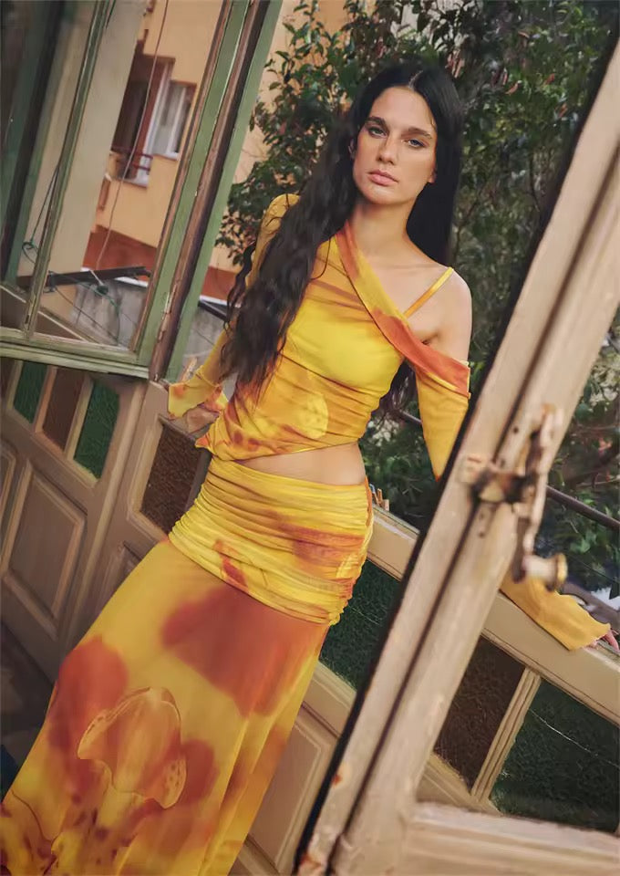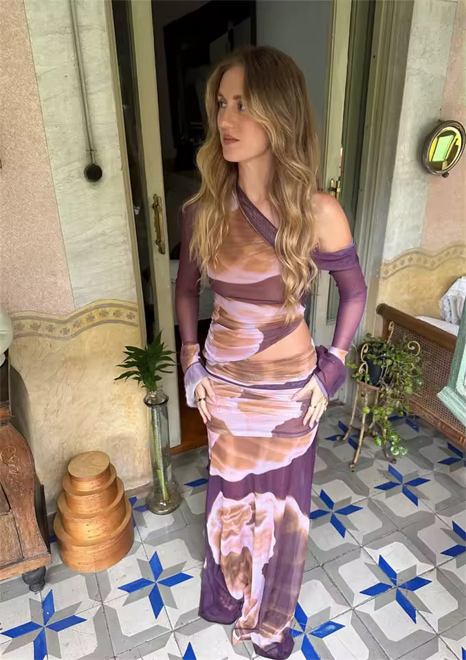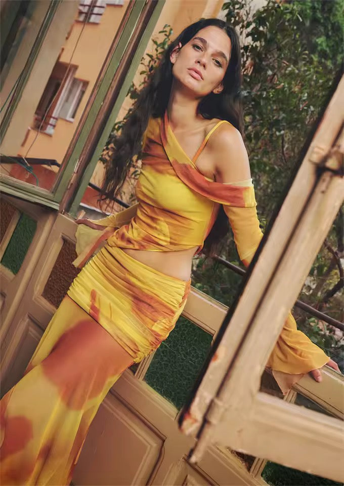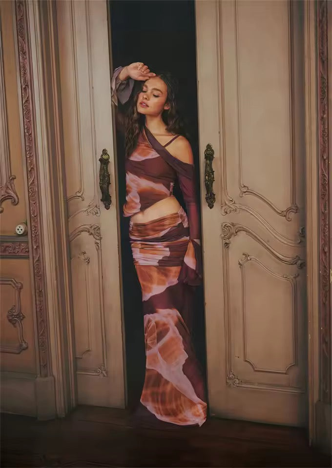 Boho Chic 2 Piece Long Sleeve Shirt And Skirt Outfit Set