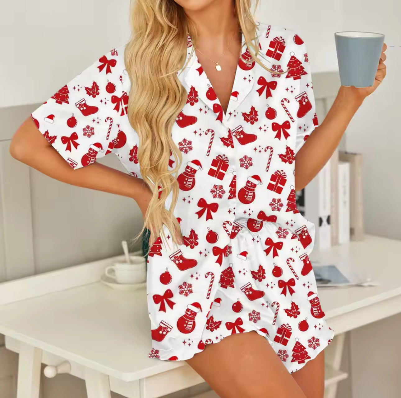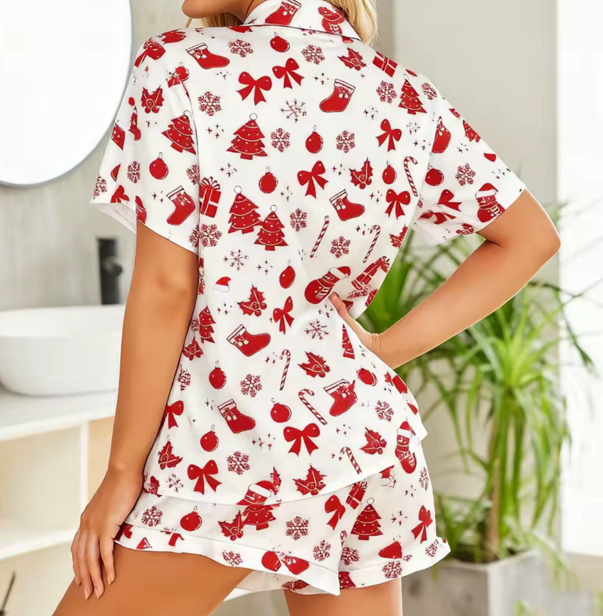 Wrap yourself in comfort this season with our Holiday Chic Pajama Sets. Crafted from soft, breathable fabric, these festive designs bring warmth and style to your bedtime routine. Perfect for cozy nights in or as a thoughtful gift, each set features flattering cuts and holiday-inspired patterns that make you look forward to sleep. Whether you're relaxing at home or hosting guests, these pajamas deliver the perfect blend of elegance and comfort. Treat yourself to the luxury you deserve this holiday season.
