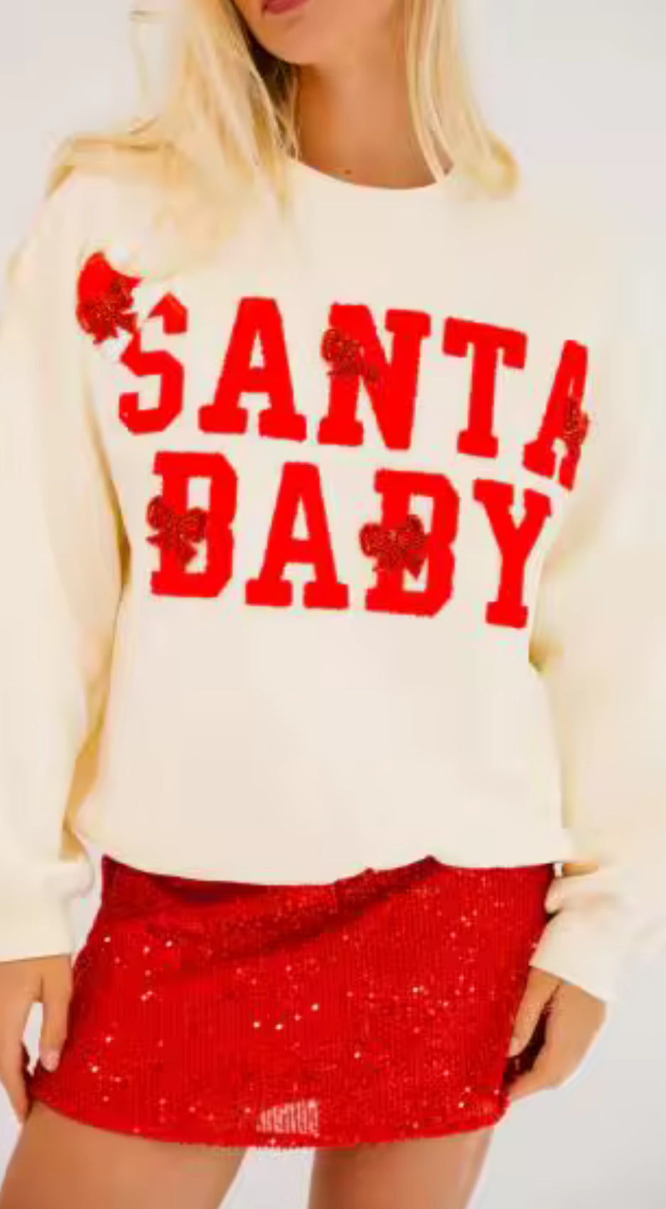Spread holiday cheer in this playful Santa Baby sweater—the perfect festive statement piece for seasonal celebrations. Featuring a charming design that captures the spirit of Christmas, this cozy knit keeps you warm while turning heads at parties, gatherings, and holiday events. Whether you're channeling retro holiday vibes or looking for a conversation-starting gift, this sweater delivers comfort and style in one irresistible package. Make this season unforgettable with a piece that's as fun as it is flattering.